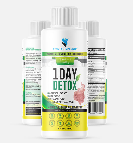 Contour Blends offers the world’s best 1-Day Detox Cleanser, designed to not only cleanse your colon but also detoxify your liver, kidneys, and heart, effectively removing unwanted toxins from your system.