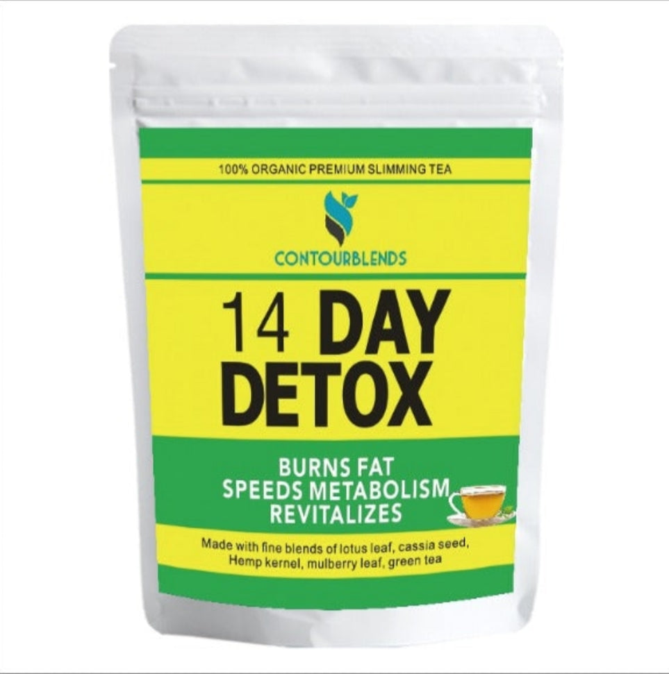 - Contour Blends 14 Days Detox Tea helps the body by charging the metabolism- promoting proper digestion, and aiding in the optimization of the digestive tract.14 Day Detox Tea's ingredients are designed to stimulate the body's ability to process excess fats, stimulate blood circulation, and provides essential antioxidants, vitamins, and minerals